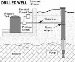 Most modern drilled wells incorporate a pitless adapter designed to provide a sanitary seal at the point where the discharge water line leaves the well to enter your home. The device attaches directly to the casing below the frost line, and provides a watertight sub-surface connection, protecting the well from frost and contamination.